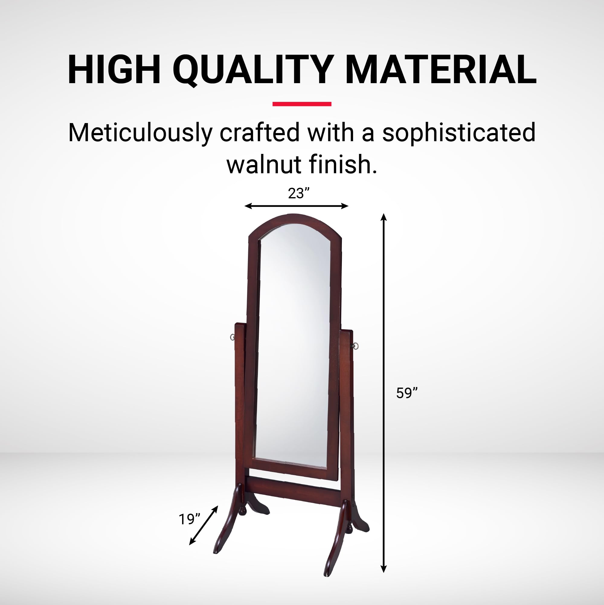 - EASILY ADJUSTABLE: The cheval design allows you to tilt the mirror to your desired angle with the side knobs, making it easy to see in any lighting or focus on any part of your figure or outfit.