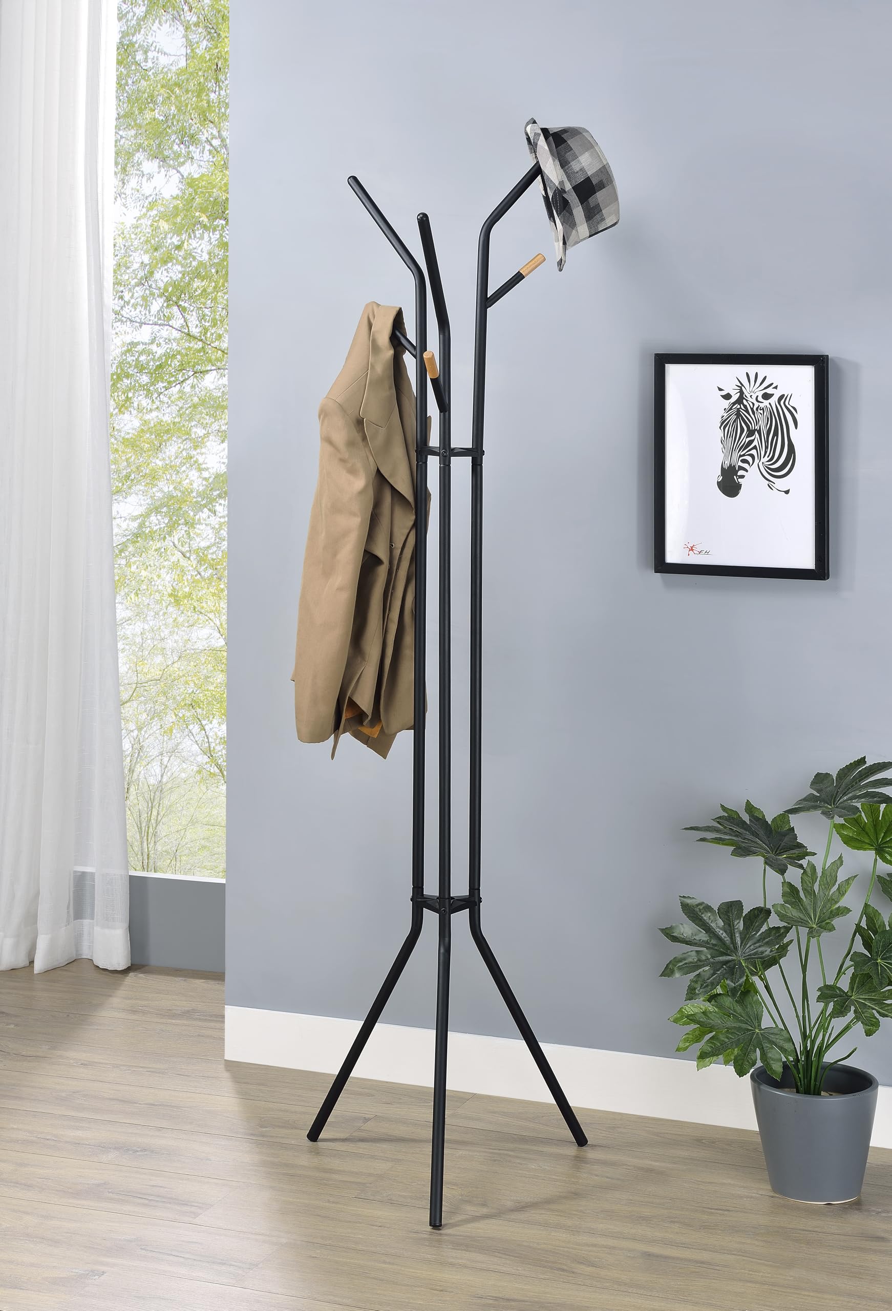 - 【Modern Design】Constructed with high-quality metal featuring a powder-coated frame, and complemented by natural wood-colored tips on the hooks. It provides the modern luxury feel you desire for any room or office.