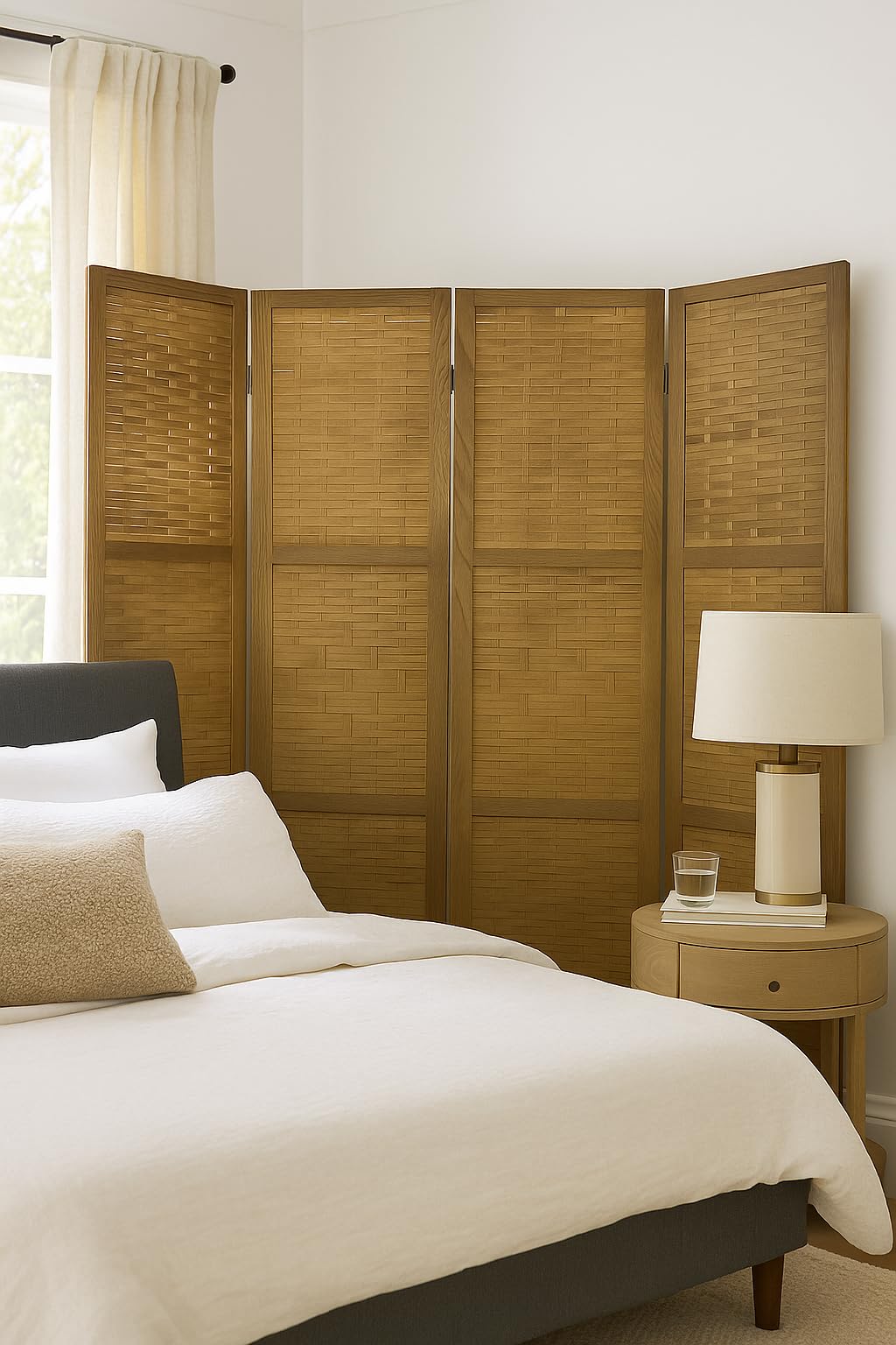 - 【FOLDABLE WOODEN FRAME WITH BAMBOO PANELS】 This strong yet lightweight room divider is perfect for the home, office, kitchen, patio, or bedroom. Made with a durable wooden frame and interwoven bamboo panels, it’s easy to move and reposition. Ideal as a decorative partition, privacy screen, or stylish separator.