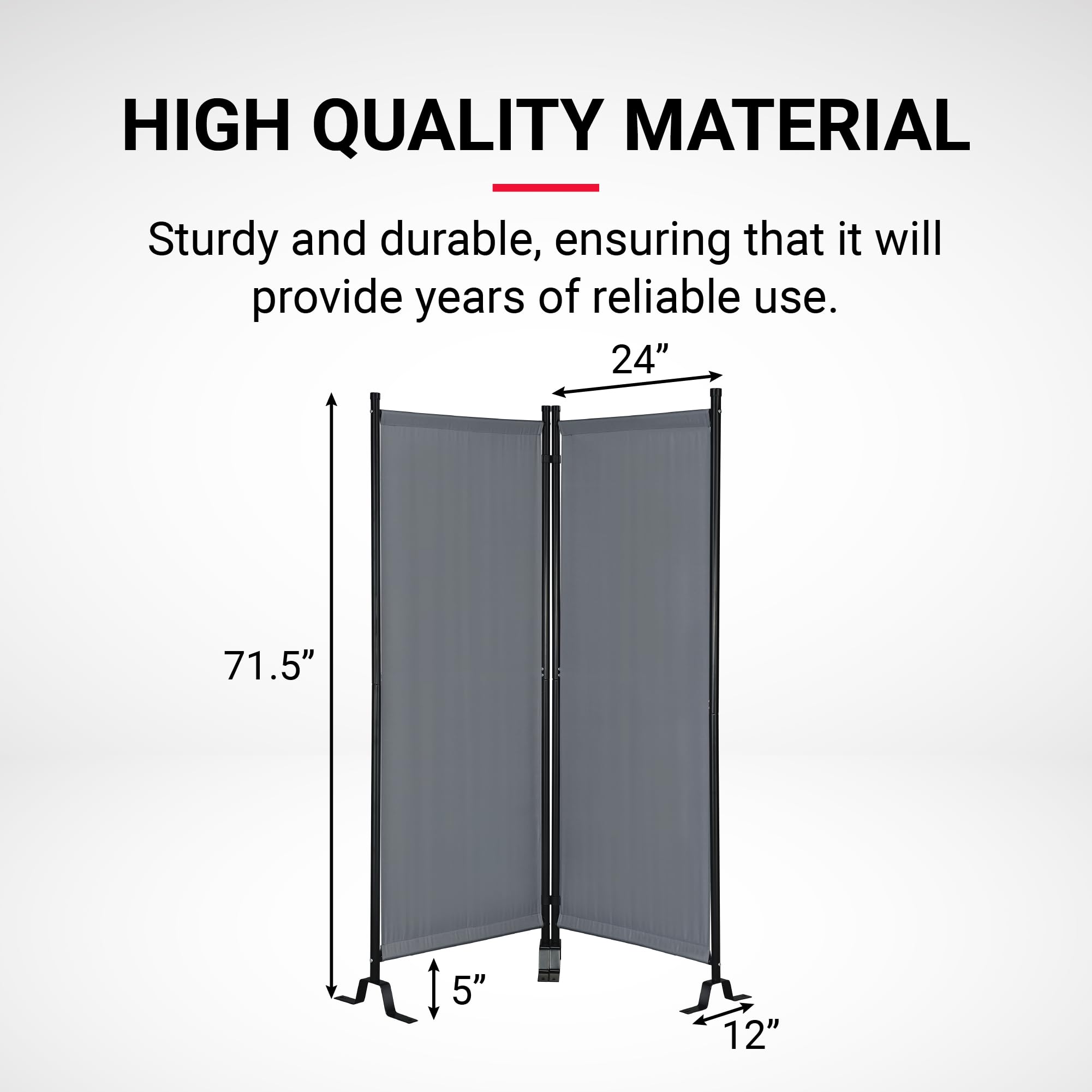 - VERSATILE: Use this divider for room separation, privacy, or to conceal any unappealing spaces. Made of water-repellent polyester fabric, it’s perfect for indoor or outdoor use. With each panel measuring 24” x 71”, this divider gets any job done.