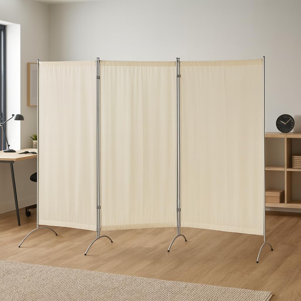 - Three large panels, made of 100% Polyester fabric with water repellent for easy cleaning and double hinged conveniently to turn either direction. Great for office division.