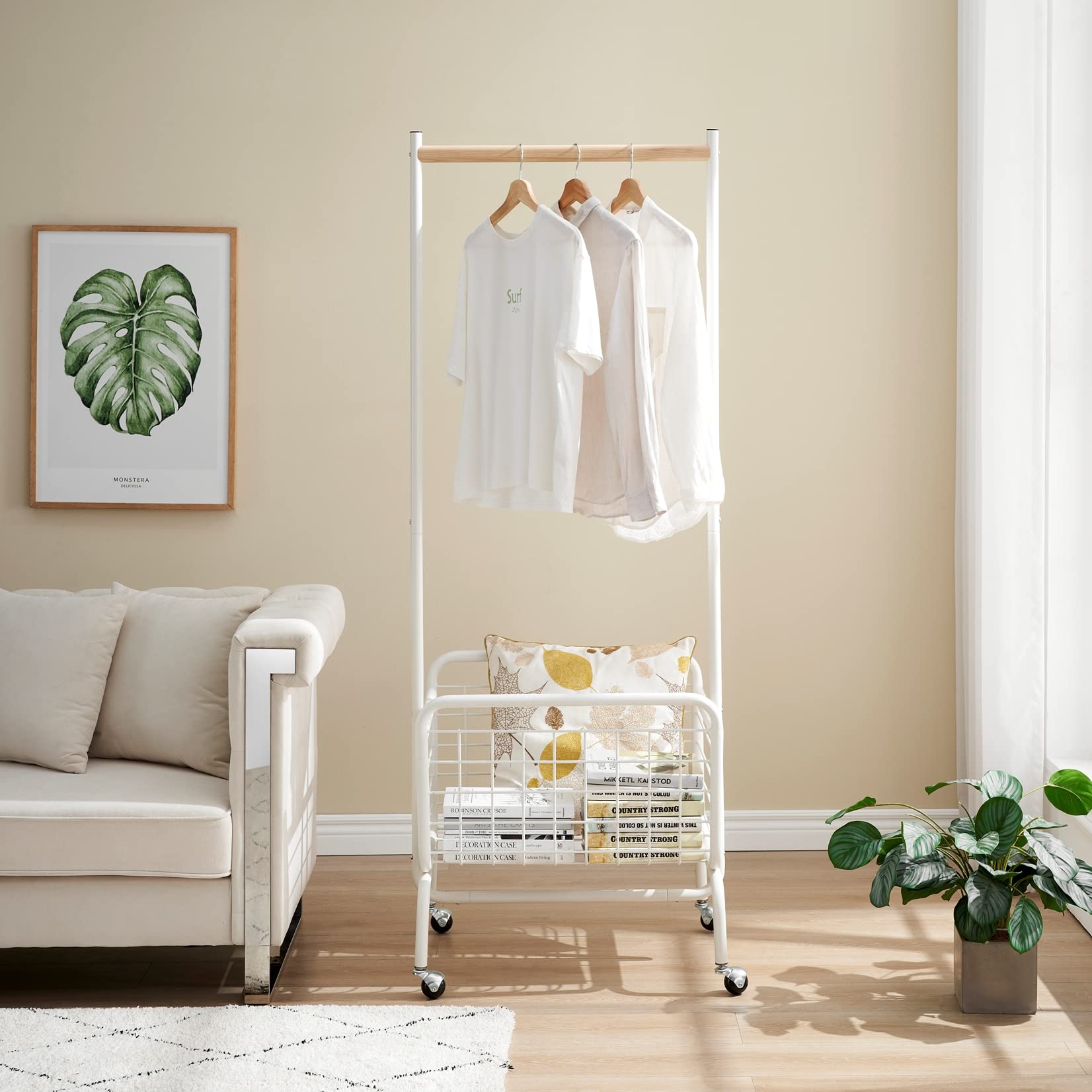 - 【Multifunction Clothing Rack】Clothing Rack and Storage Basket Combined in one simple and functional design.