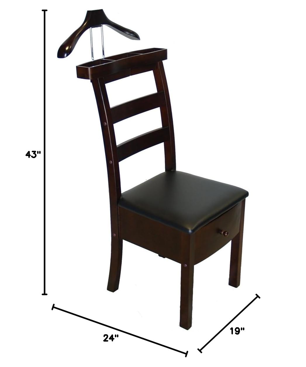 Proman Products Manhatten Chair Valet VL16654 with Drawer, Hanger, Trouser Bar and Tie & Belt Bar, 19"W x 24"D x 43" H, Dark Walnut