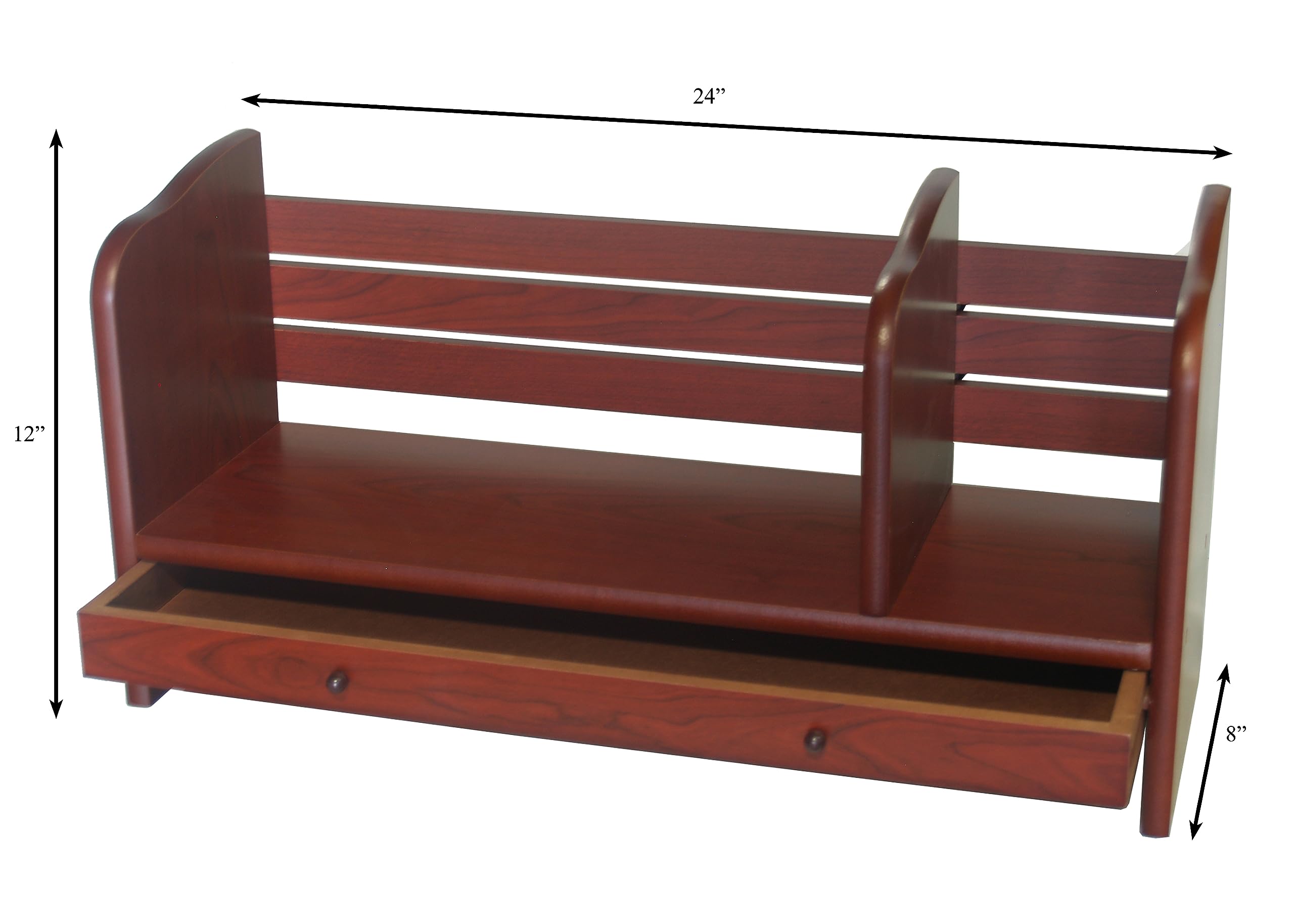 Proman Products Renaissance Desktop Red Wood Book Rack Adjustable with Drawer, 24" W x 8" D x 12" H, Reddish Walnut—